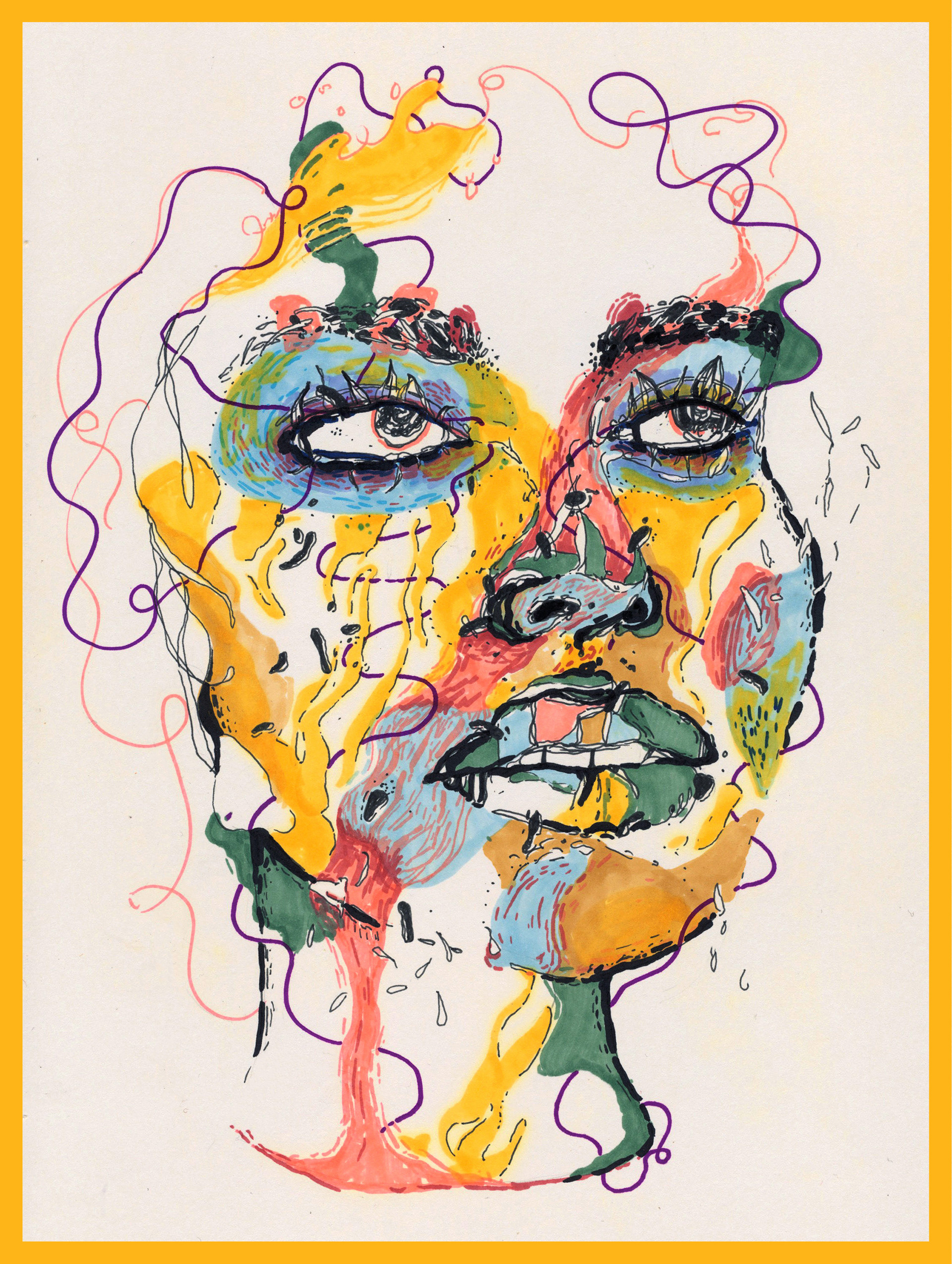 To contrast the clean and refined nature of the design work, these illustrations explore a more raw and artistic form of expression. This ongoing series convey a sense of conflict, tension, and identity. Each piece uses a mixed media palette of markers, pencils, pencil crayons, paint or fine-liners.